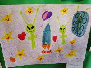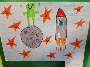 Воспитанники с большим интересом слушали рассказы о планетах и звёздах, о комических кораблях, спутниках, о собачках Белке и Стрелке, которым удалось до человека побывать в космосе, о первом человеке, отправившемся покорять космическое пространство — Юрии Гагарине, о белорусских космонавтах Олеге Новицком, Владимире Коваленке, Петре Климуке. О Марине Василевской, которая  стала первой гражданкой Беларуси, достигшей околоземной орбиты в составе экипажа космического корабля «Союз МС-25». Ребята играли в интересные игры, строили космические корабли, занимались творчеством. Воспитателями дошкольного образования была организована выставка детских. рисунков.